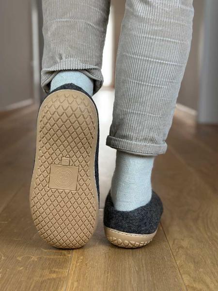 Die Slipper bleiben angenehm leicht und flexibel, während die feste Sohle Stabilität und Schutz bietet. Sie sind ideal als Ganzjahres-Hausschuh geeignet und überzeugen durch eine perfekte Kombination aus natürlicher Wärme, Komfort und Alltagstauglichkeit.