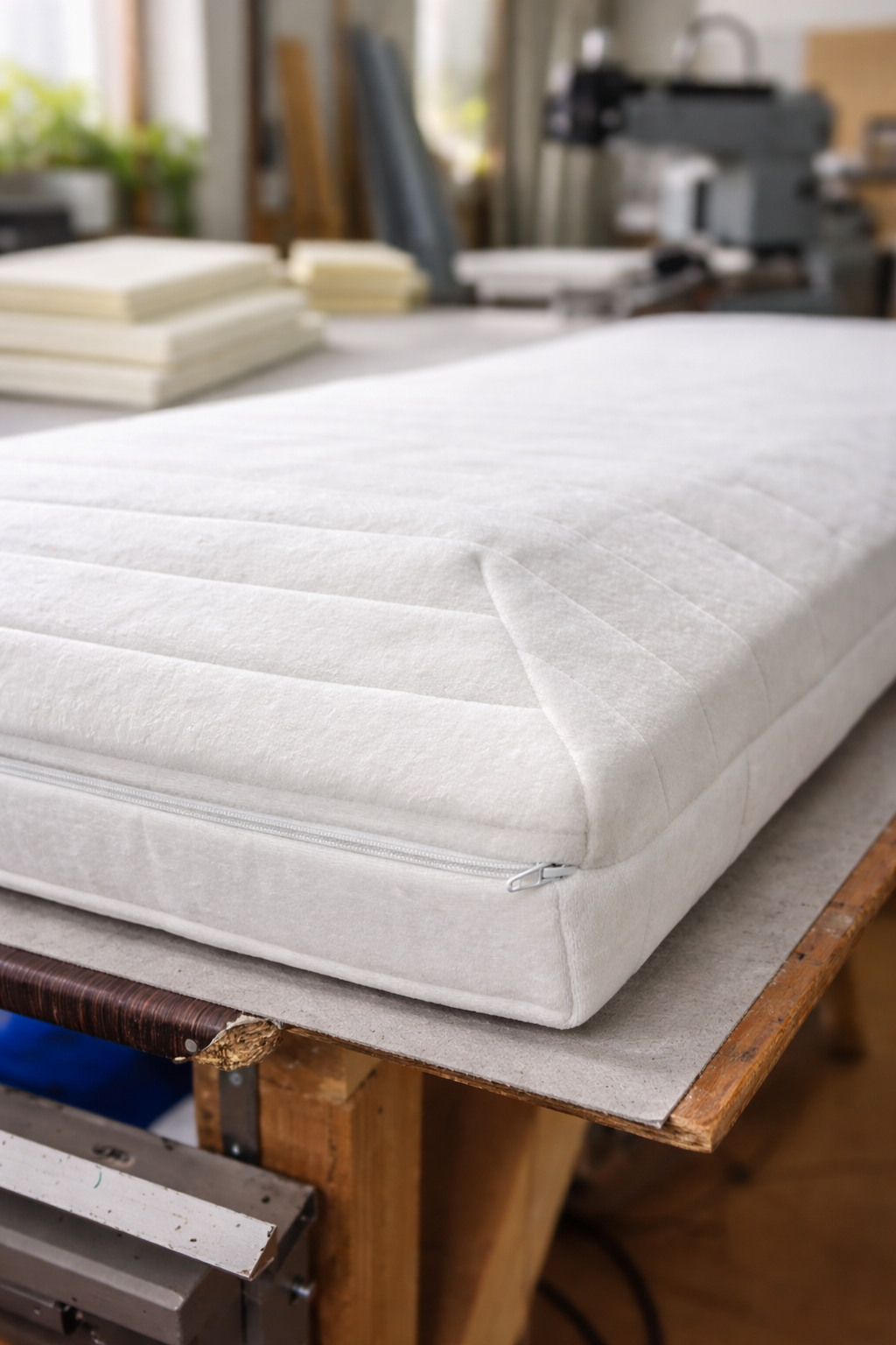 Gefertigt werden unsere Matratzen in eigener Produktion in Haan. Dabei verwenden wir hochwertige Materialien wie langlebigen Kaltschaum und atmungsaktive Baumwollbezüge. Das Ergebnis ist eine individuelle Lösung, die optimalen Liegekomfort mit hoher Strapazierfähigkeit verbindet.