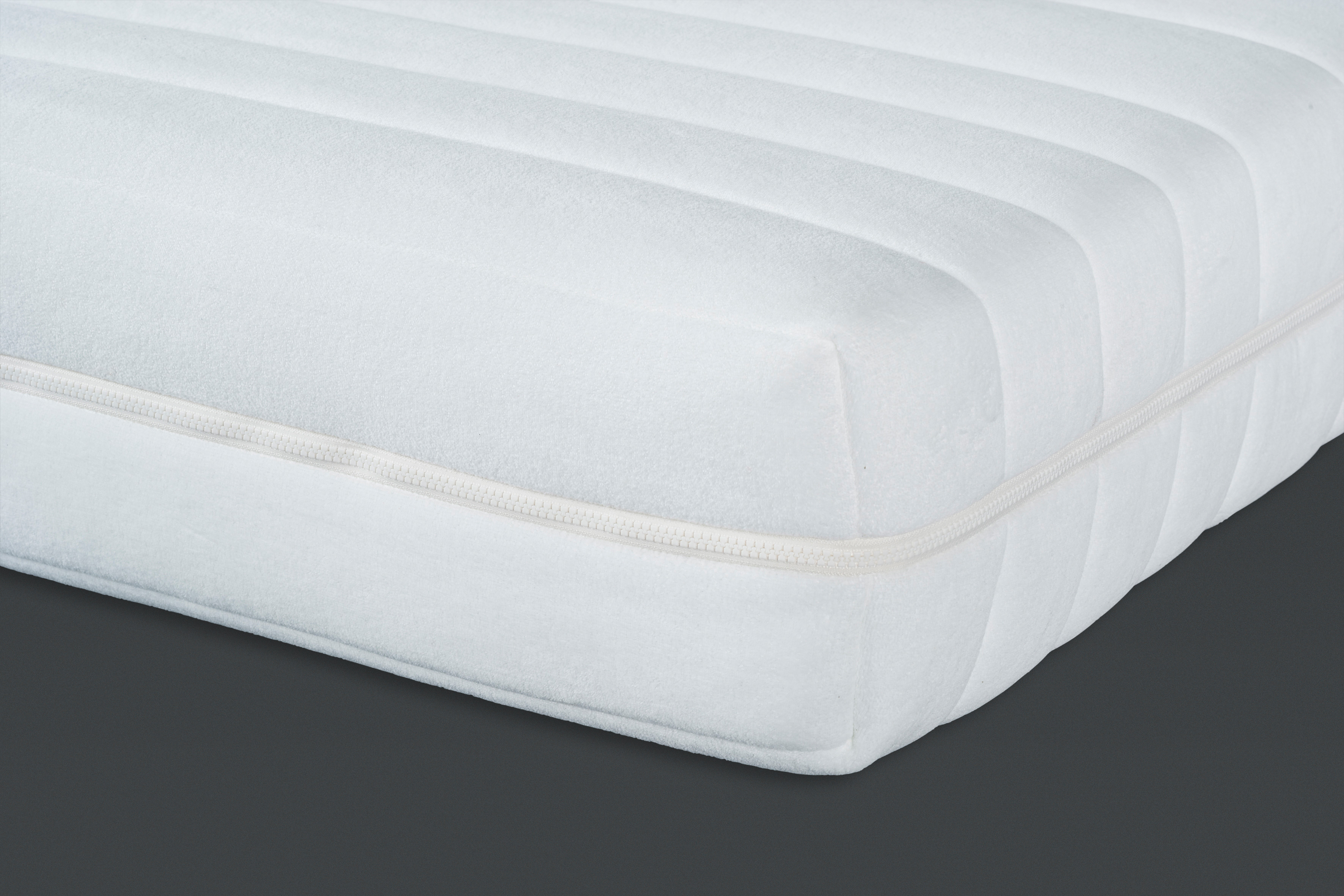 Der kuschelig-weiche Velour-Bezug (100 % Baumwolle im Flor) ist mit einem rundumlaufenden Reißverschluss ausgestattet und kann bis 60 °C gewaschen werden. Optional ist ein 100 % natürlicher Matratzenbezug erhältlich.