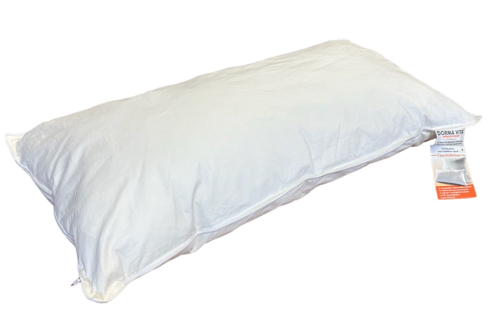 Das Dorma Vita Kopfkissen mit Faserfüllung bietet ein besonders weiches und anschmiegsames Liegegefühl. Sein flexibles Volumen ermöglicht ein individuelles Anpassen, sodass Kopf und Nacken sanft gebettet werden und ein komfortables, entspanntes Schlafgefühl entsteht.
