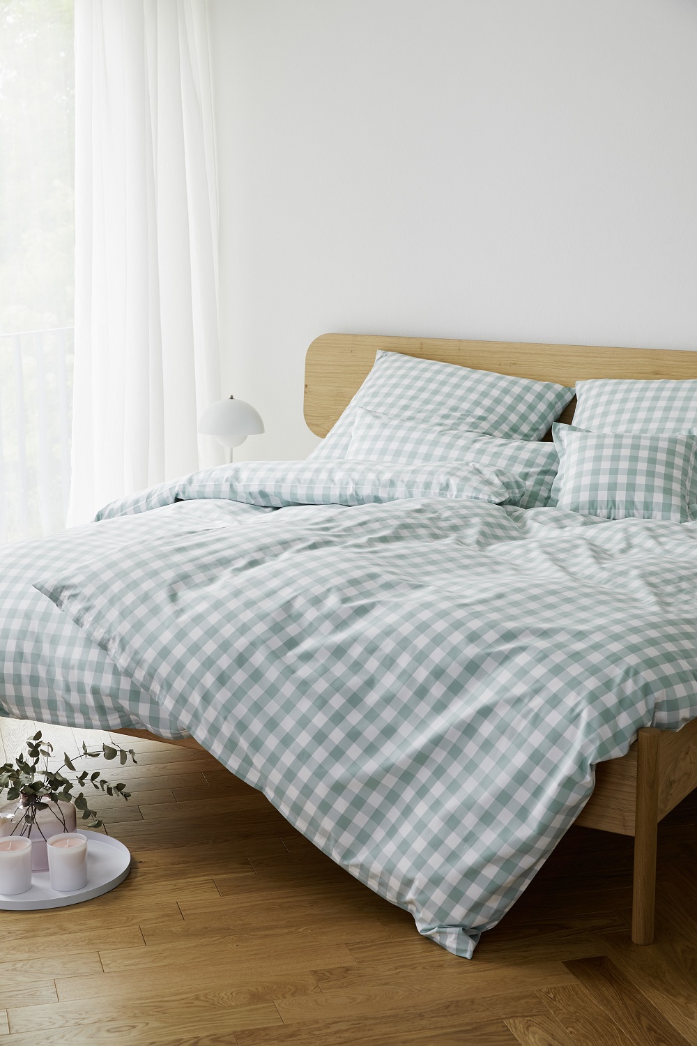Quadro besteht aus hochwertigem Web-Perkal, einem fein gewebten, angenehm matten Baumwollstoff, der für seine glatte, dichte Struktur bekannt ist. Das Material liegt kühl und anschmiegsam auf der Haut, ohne zu beschweren. Jeder Bezug ist sorgfältig verarbeitet und mit präzisen Nähten versehen, sodass die Bettwäsche langlebig bleibt und ihre feine Struktur auch bei täglichem Gebrauch bewahrt. Die klare Webart bringt das Karomuster besonders sauber und detailreich zur Geltung.