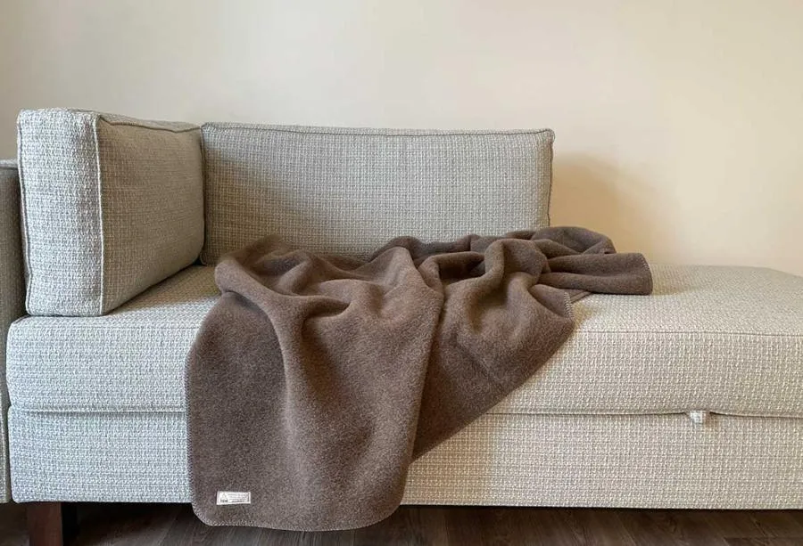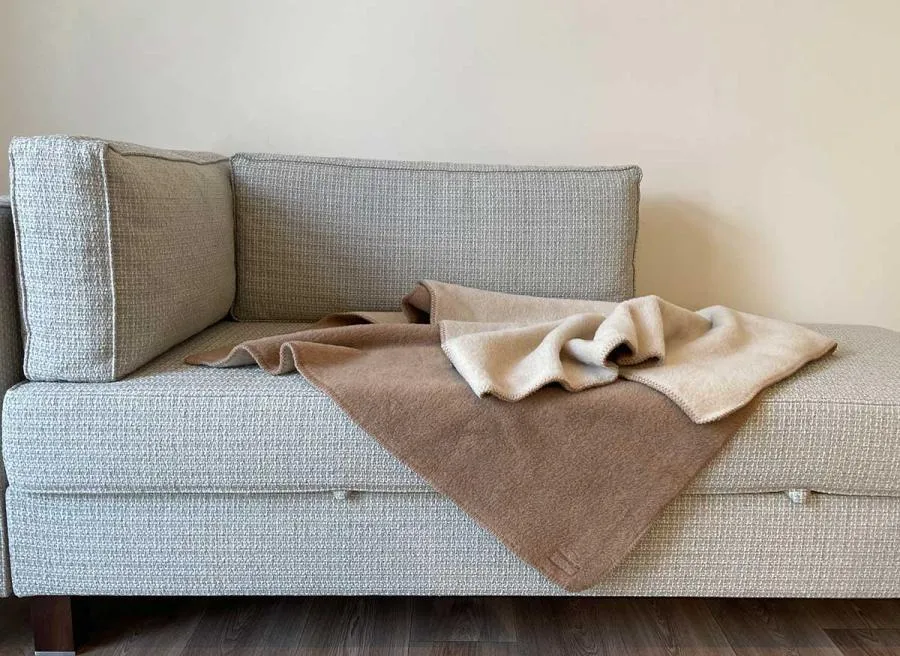 Das natürliche Alpaka-Vlies reguliert die Temperatur und sorgt für angenehme Wärme, ohne zu überhitzen. Die Größe von 100 x 150 cm macht die Decke flexibel einsetzbar – ideal für gemütliche Stunden auf dem Sofa oder Sessel.