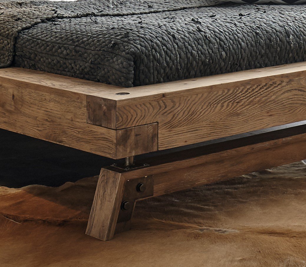 Massivholzbett mit Stabil-Kufenfüßen – Wildeiche Vintage natur geölt