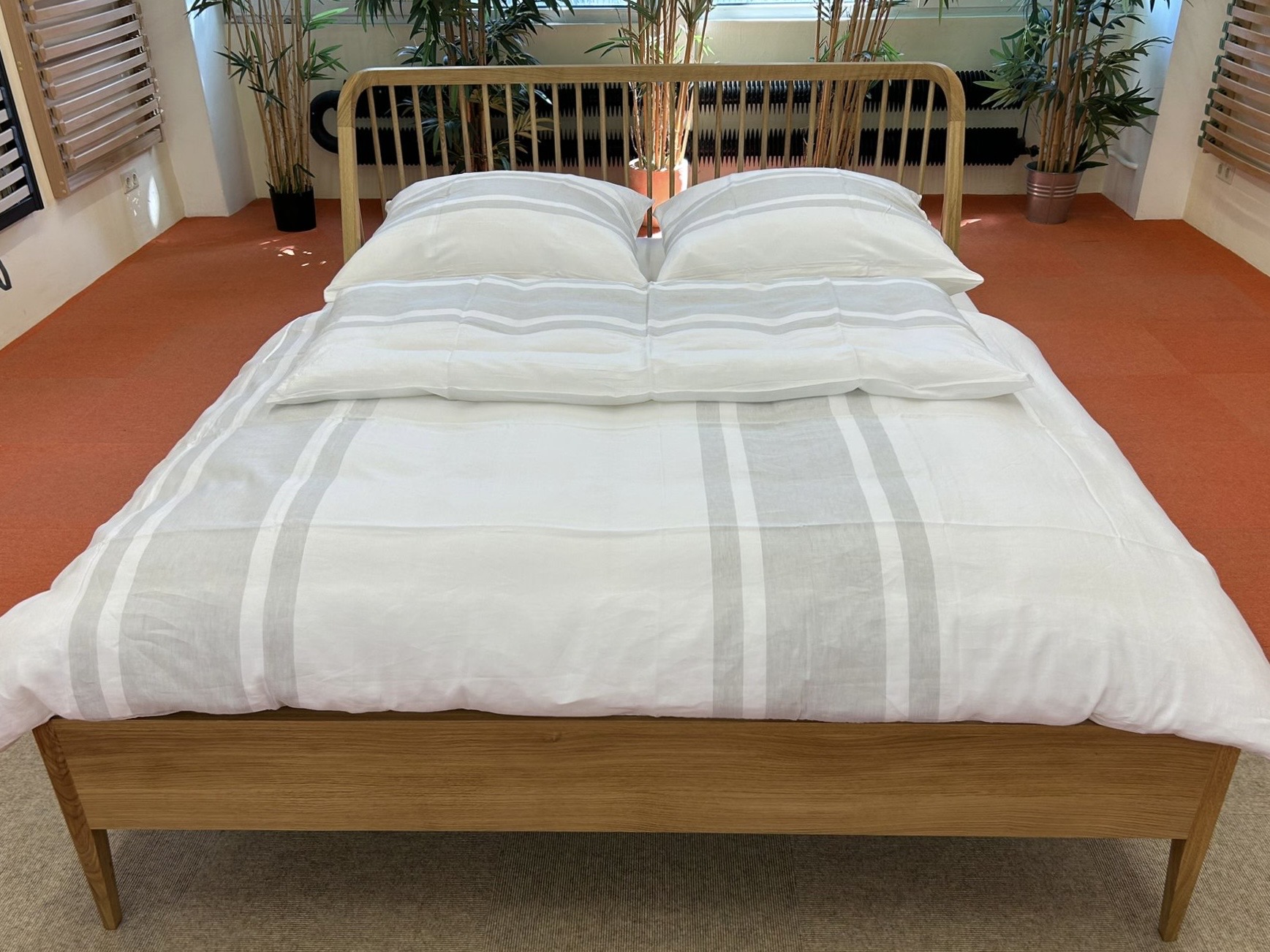 Das elegante Sprossenbettgestell, exklusiv bei Dorma Vita, vereint Leichtigkeit und Stabilität. Das markante Kopfteil verleiht dem Bett eine luftig-zeitlose Anmutung und macht es zum Blickfang in jedem Schlafzimmer. Ähnlich wie das Ethnicraft Bett Spindle, wurde auch dieses Modell weiterentwickelt und bietet Ihnen mehr Einlegetiefe sowie eine komfortable Rahmenhöhe von 43 cm – ideal für bequemes Zubettgehen und Aufstehen.