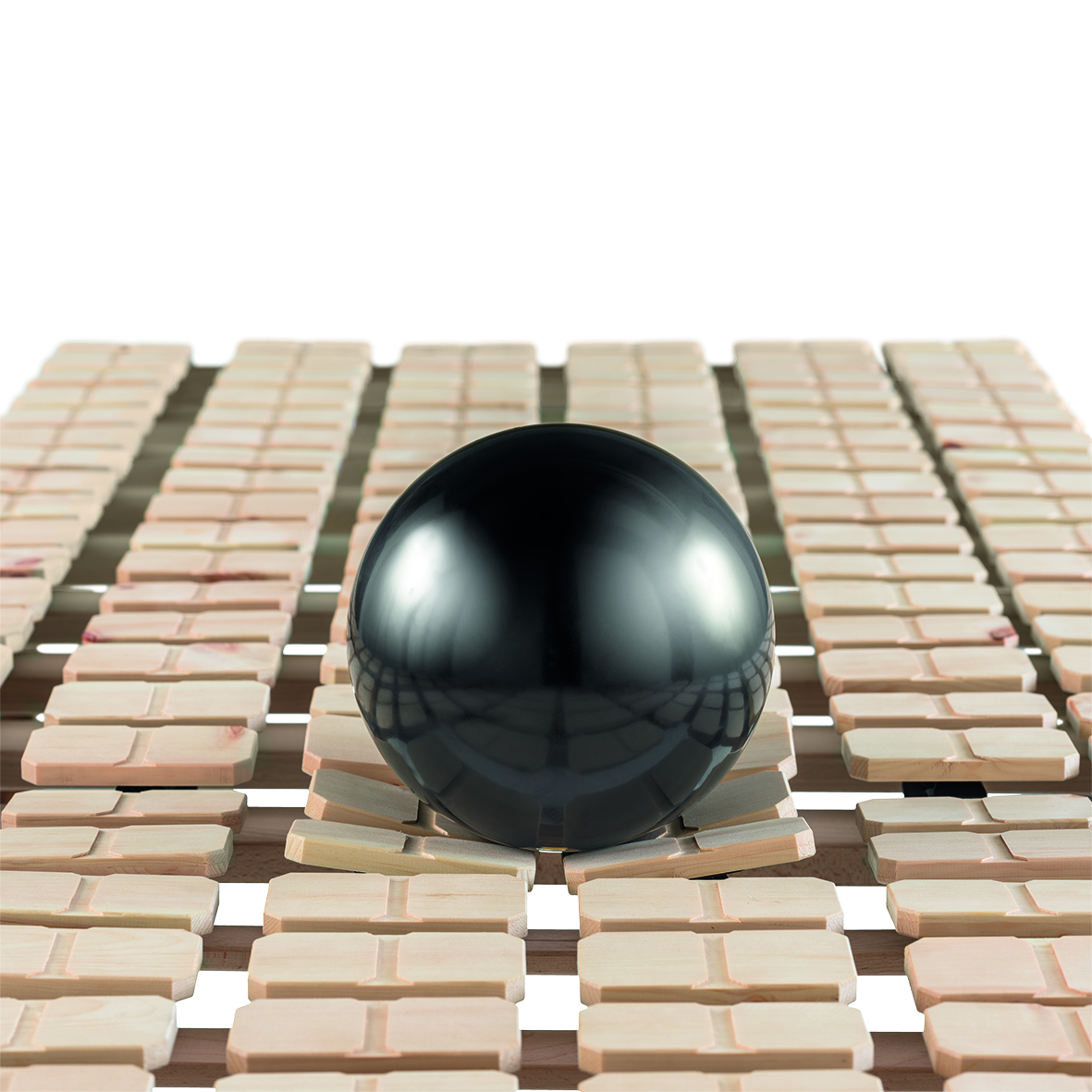 In der Größe 90 x 200 cm sind ca. 144 einzelne Zirbenteller verbaut. Diese sind flexibel und beweglich gelagert und passen sich jeder Körperform individuell an. So entsteht eine druckentlastende Liegefläche, die die Wirbelsäule optimal unterstützt. Eine zusätzliche Schulterkomfortzone entlastet den oberen Rückenbereich, während die frei einstellbare Lordose- und Beckenunterstützung für ergonomische Lagerung sorgt.