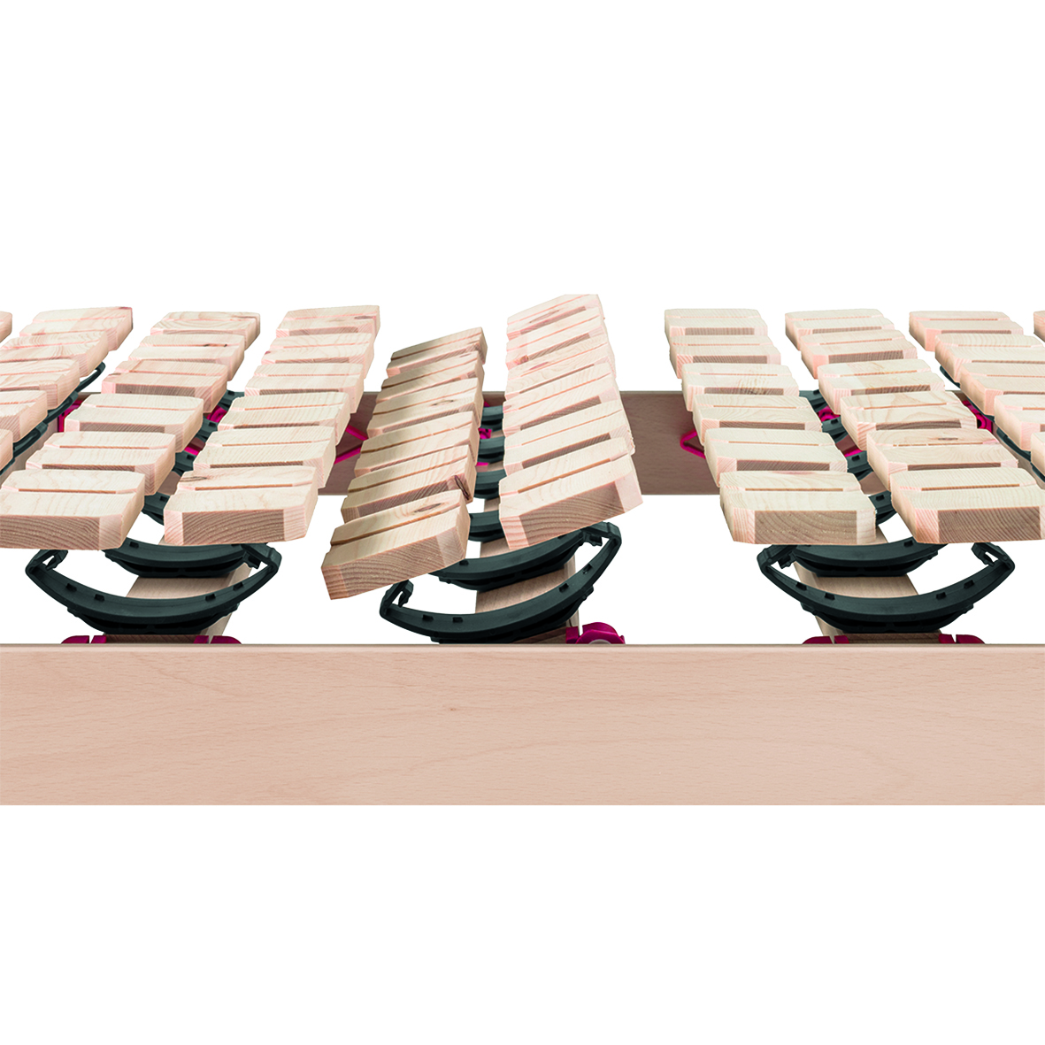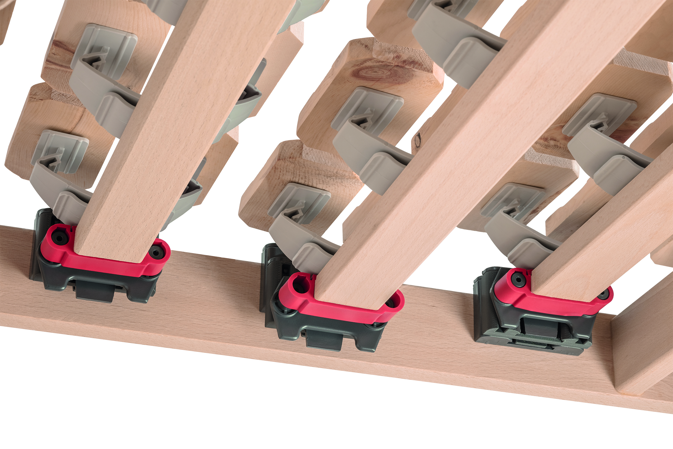 Jedes Federelement ist mit Feststellklammern (rote Elemente) ausgestattet. Damit lässt sich die Festigkeit je nach Bedarf regulieren – für eine noch präzisere Anpassung an Ihre Schlafbedürfnisse.
