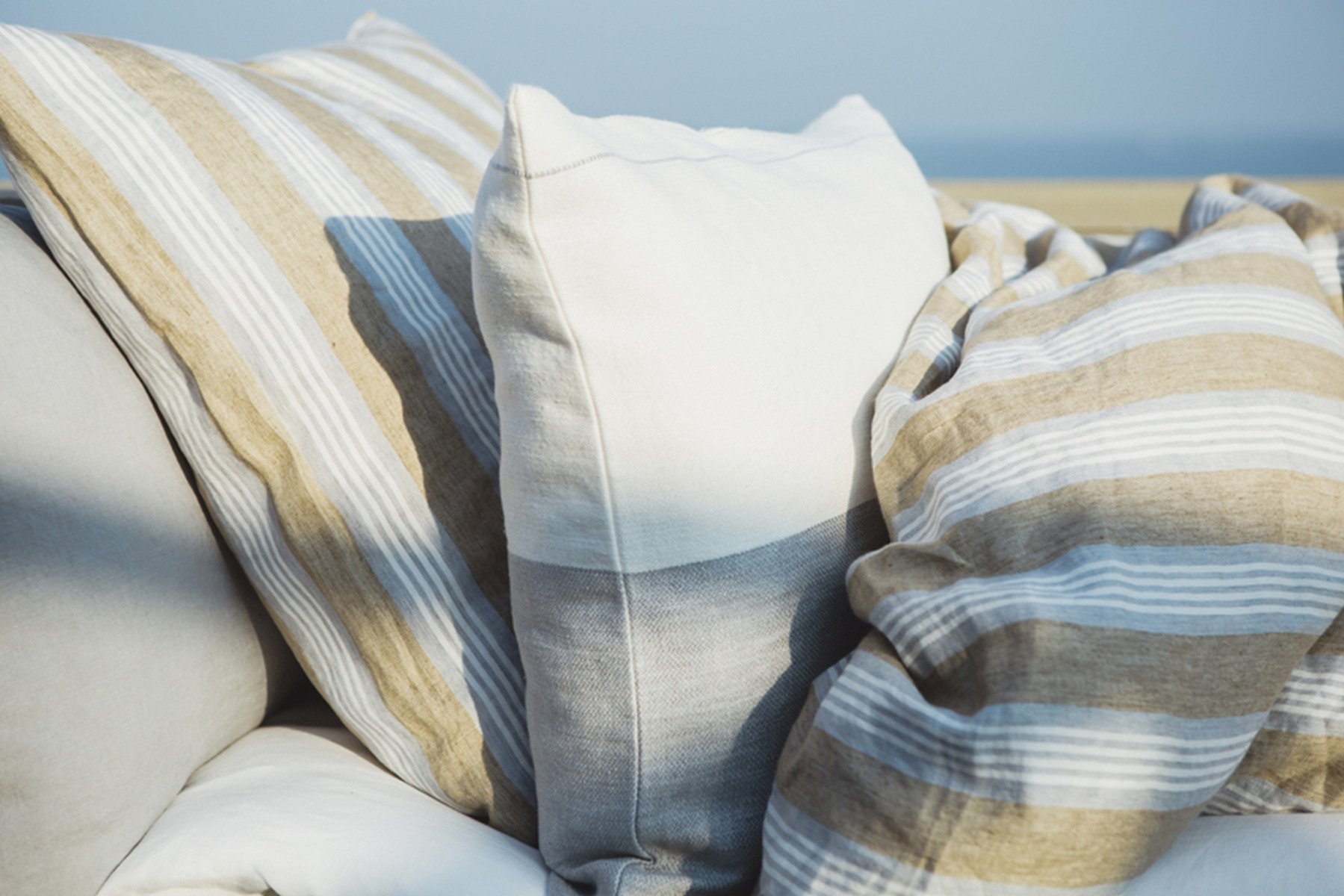 beige gestreifte Leinen Bettwäsche