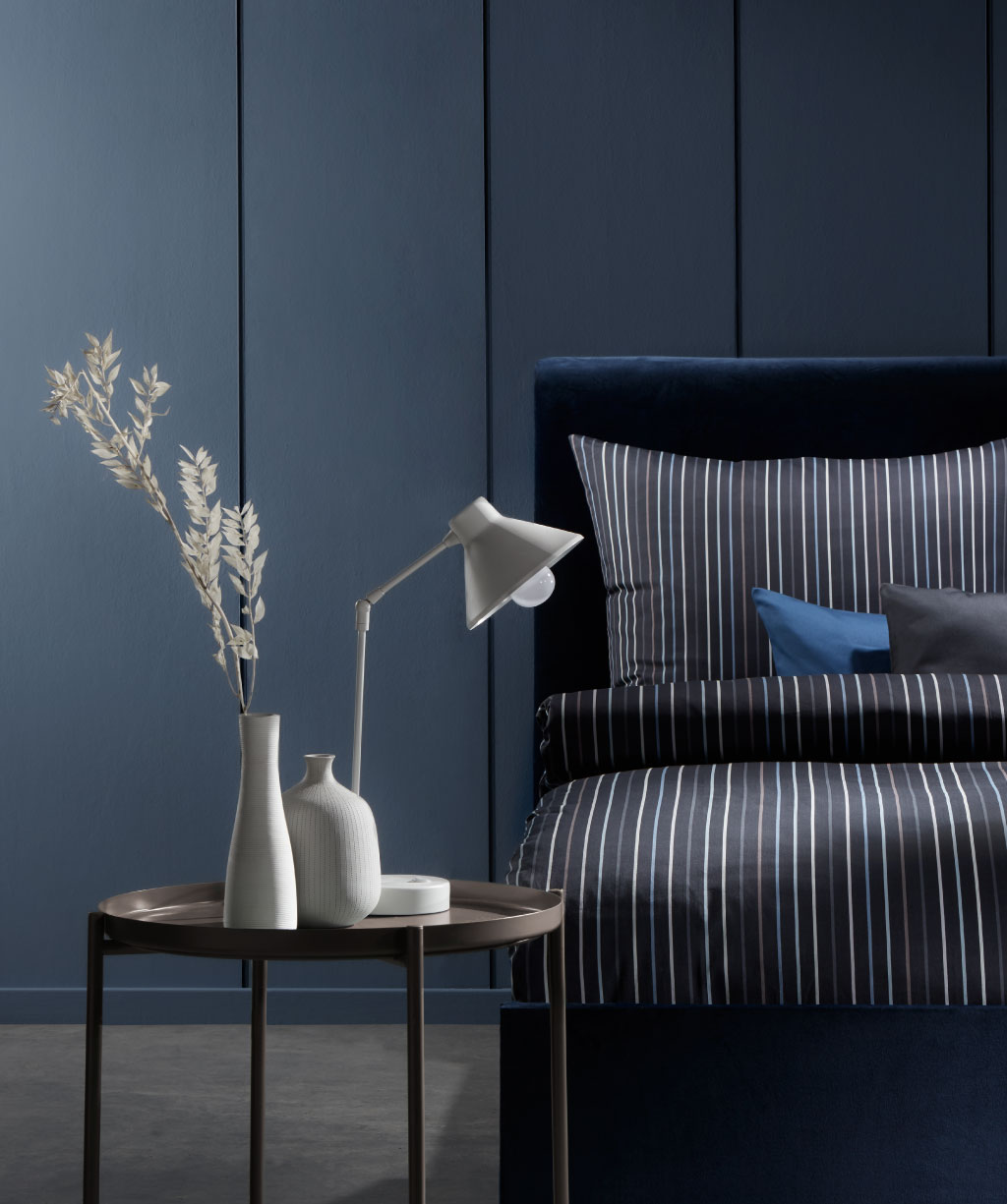 Wenn das erste Licht des Tages durch das Schlafzimmerfenster gleitet, sorgt diese gestreifte Mako‑Satin Bettwäsche dafür, dass der Raum in sanften, harmonischen Linien erscheint. Die feinen Streifen verleihen dem Bett ein ruhiges, elegantes Muster, das zugleich zurückhaltend und stilvoll wirkt. Jeder Blick auf das Bett wird zum Moment der Ruhe und Leichtigkeit, das Zimmer wird zu einem Ort der Gelassenheit und Entspannung.
