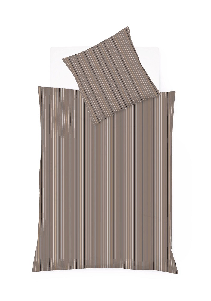 Die Bettwäsche besteht aus 100 % naturreiner Baumwolle, verarbeitet in feiner Mako‑Satinbindung. Durch die besondere Webart entsteht eine glatte, seidige Oberfläche mit zartem Glanz und einer edlen Textur. Die Streifenstruktur verleiht dem Stoff Tiefe und Visualität, ohne aufdringlich zu sein. Sorgfältig gearbeitete Nähte und saubere Abschlüsse zeigen handwerkliche Liebe zum Detail und sichern eine langlebige, wertige Verarbeitung, die viele Nächte unbeschwerten Schlafs erlaubt.