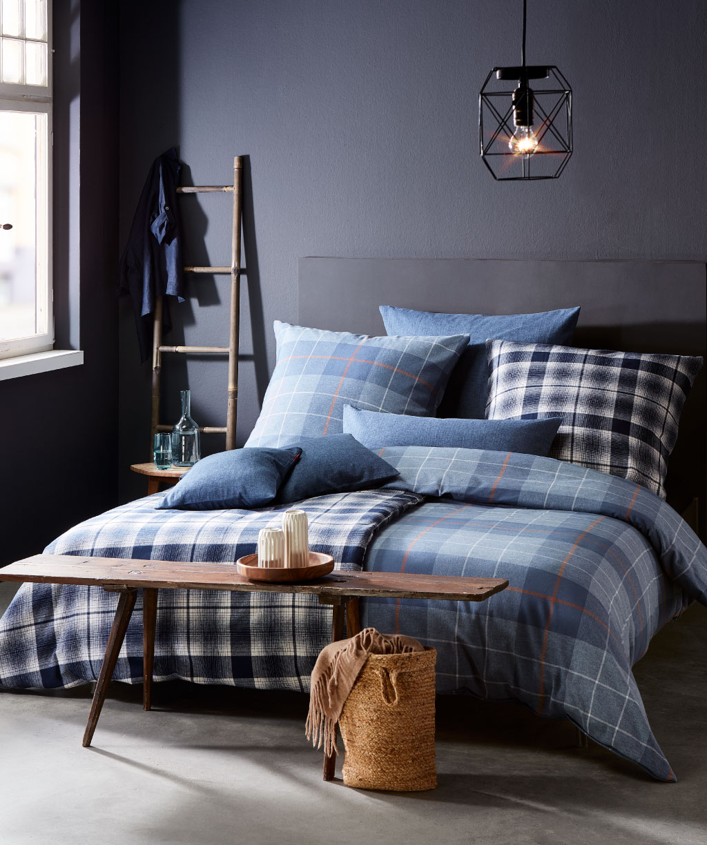 Diese Bettwäsche schenkt dem Schlafzimmer eine behagliche, wohnliche Atmosphäre und lädt besonders in der kühlen Jahreszeit zum Einkuscheln ein. Das klassische Karomuster verleiht dem Bett eine zeitlose Ausstrahlung und sorgt für ein Gefühl von Wärme und Verlässlichkeit. So wird das Schlafzimmer zu einem Rückzugsort, der Ruhe, Komfort und winterliche Gemütlichkeit ausstrahlt.